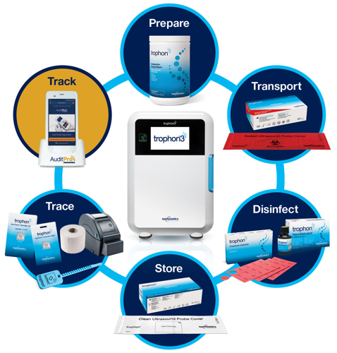 Reusable accessory designed specifically for the high-level disinfection (HLD) of wireless ultrasound probes and is compatible with all trophon devices.